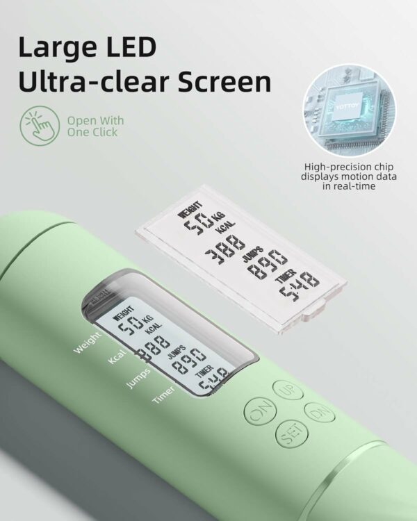 1.YOTTOY Jump Rope: We are dedicated to developing high-quality lightweight sports products. Our Electric Jump Rope features an HD LED display that shows the Timer, Weight, Calorie, and Circles. Set your weight and track time, number of jumps, and calories burned to achieve your fitness goals more effectively.