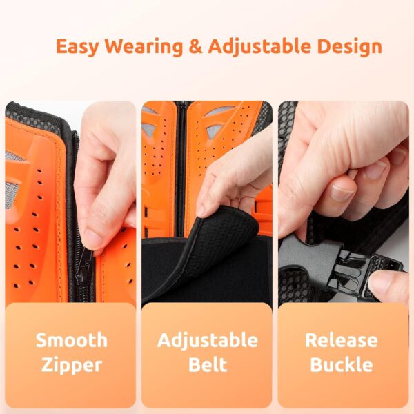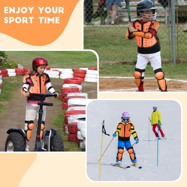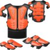 Adjustable Design: This motorbike protection jacket kids equipment includes chest protectors,a pair of elbow pads and a pair of knee pads,which provide comprehensive protection.They are all adjustable in size and easy to adjust.They are suitable for children of many body types.It also brings the armor closer to the body and protects children better
